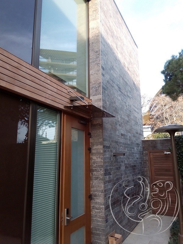 Козырек над парадным входом в здание является практически неотъемлемой частью в его экстерьере, и чтоб этот элемент экстерьера смотрелся гармонично и привлекательно, все чаще для его изготовления применяют закаленный триплекс и высококачественную нержавеющую сталь.